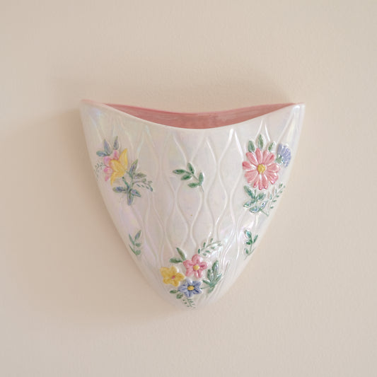 Vintage MALING Lustreware Floral Wall Pocket Vase