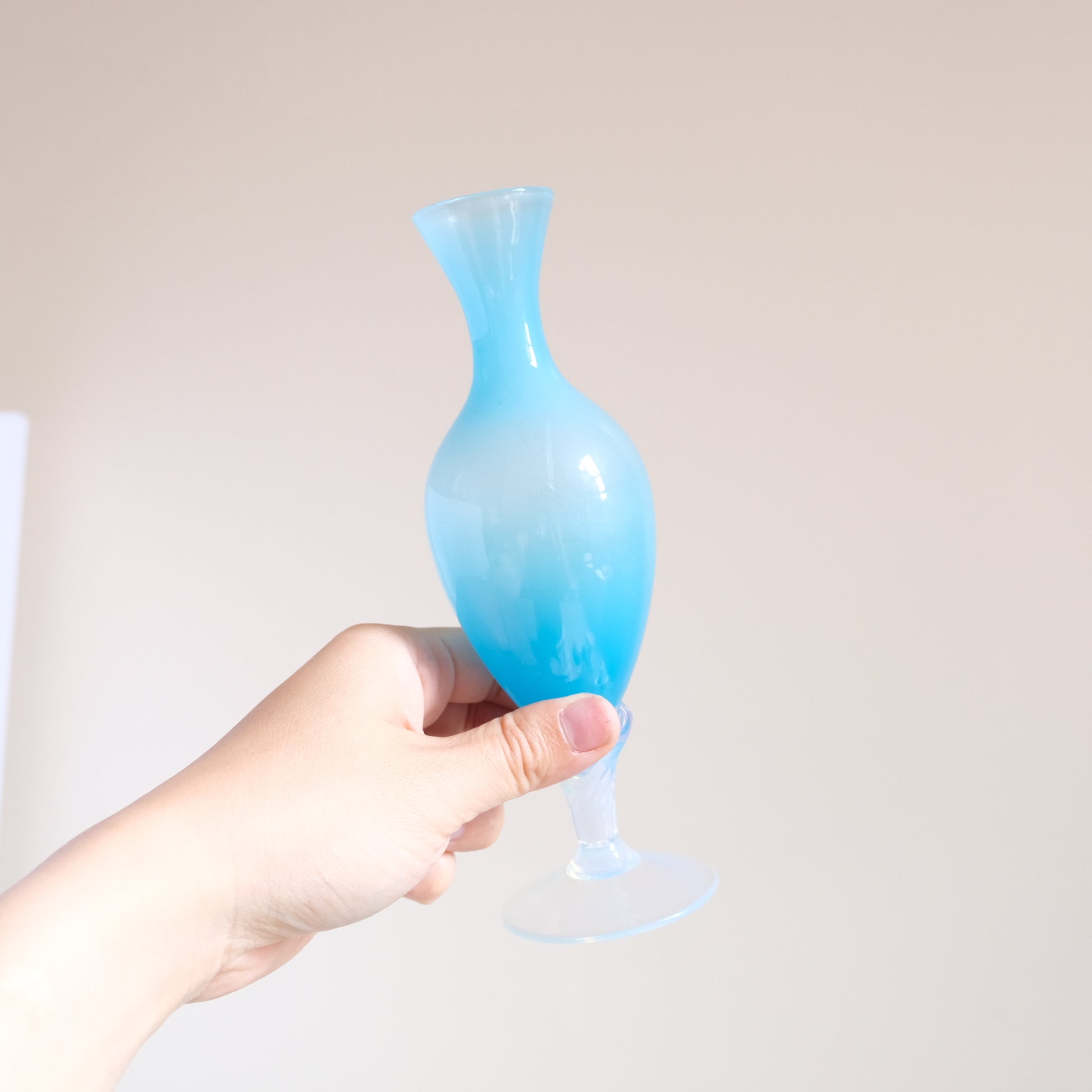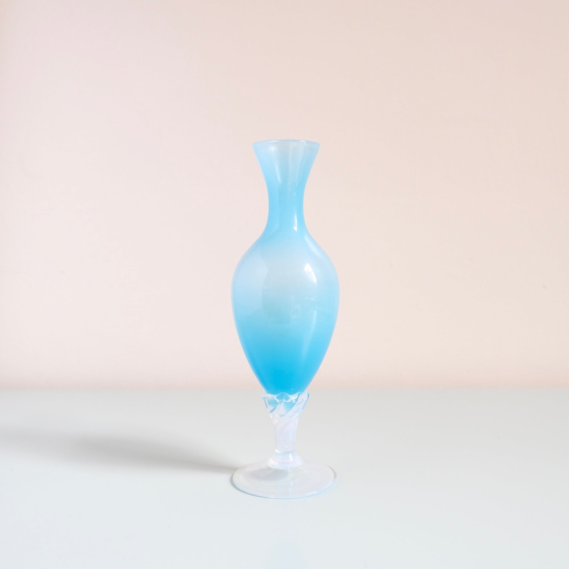 パステルブルーの半透明な質感が美しい、Opaline glassの花瓶です。